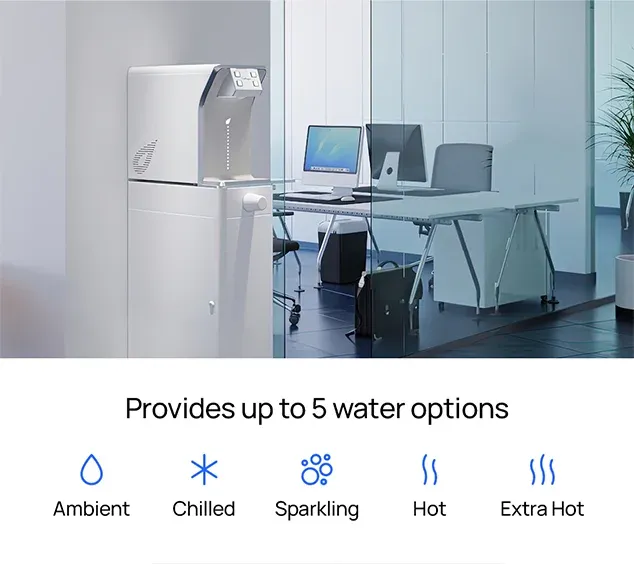 Einige unserer Geräte bieten bis zu 5 Wasseroptionen, darunter sprudelndes und heisses Wasser.